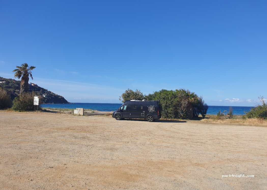 Parcheggio sulla spiaggia molto grande per tutti i mezzi. Sono stata sabato sera, troppo rumoroso per via del bar vicino (musica fino alle 1 AM)