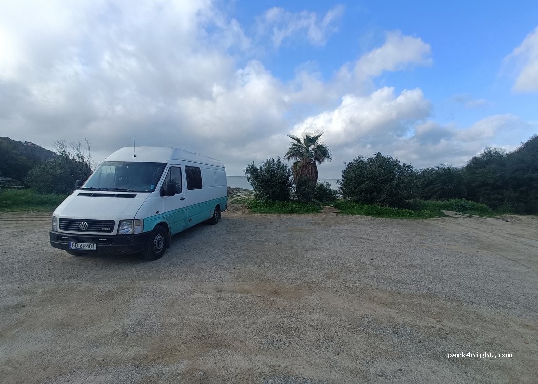 Superbe parking, proche d'une jolie plage. Par contre, impossible de dormir avec le bruit de la musique et des jeunes qui font du bazar toute la nuit. Nous avons quitté le lieu à 3h du matin excédées par le bruit. Nous avons rejoint la plage de Saponas à quelques km de là.