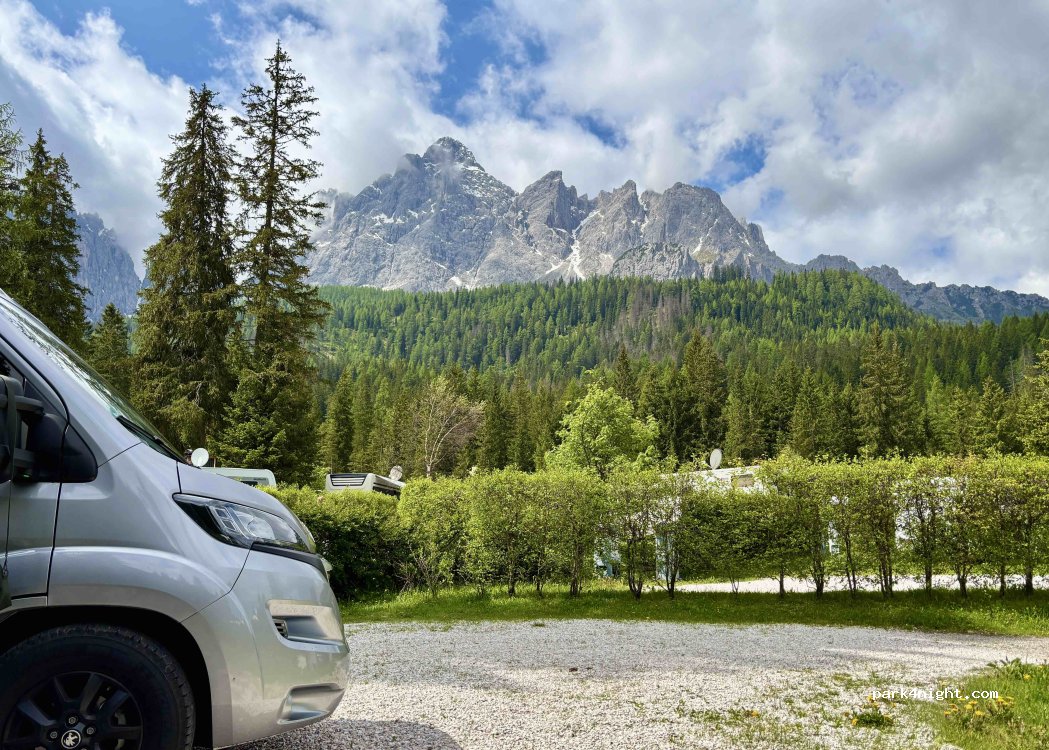 Težko ocenim kamp, lahko pa komentiram ceno. Spanje bi našo štiričlansko družino stalo 90 EUR na parceli ali 42 EUR na betoniranem "začasnem" parkirišču. Ker je bilo tudi vreme slabo, smo šli raje iskat ugodnejše, pa čeprav manj dolomitske možnosti.