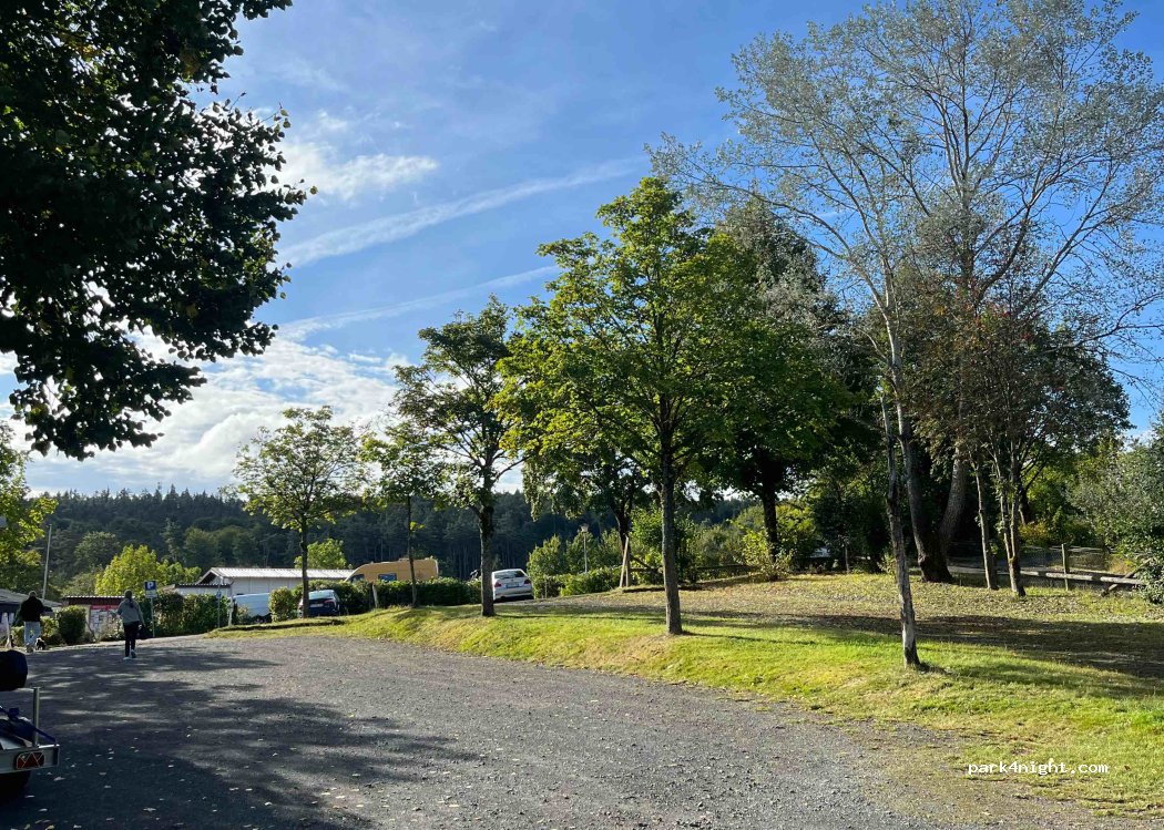 Stellplatz vor Campingplatz, ca. 20 Plätze, Stromanschluss 5 A 5 kWh pauschal 3.-€. Übernachtung 2 P. 18.-€. Sanitär kann benutzt werden. Duschen extra. Brötchenservice erst ab 50 Bestellungen möglich. Gaststätte sehr einfach. WLAN kostet extra 6€. ln der Gaststätte frei. Platz liegt sehr ruhig. Man ist schnell auf die Autobahn. Kann man als Zwischenstopp gut nutzen ist aber eigentlich zu teuer.