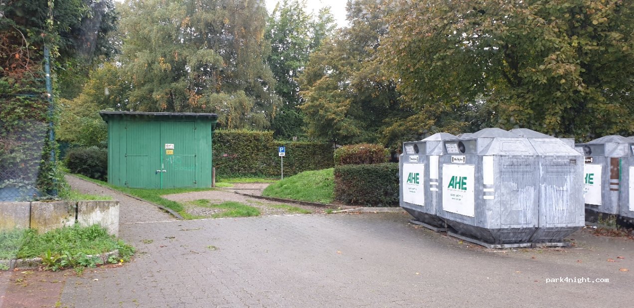 Parking spots are graffitied and rubbish strewn against an overgrown alleyway. Right beside recycling bins beside very busy car park alongside sports ground. Did not feel safe and definitely not quiet or country like - infact almost in centre of town. No facilities but open air swimming pool nearby. Many restaurants in town so perhaps ok for a meal stop but would not feel safe staying overnight.