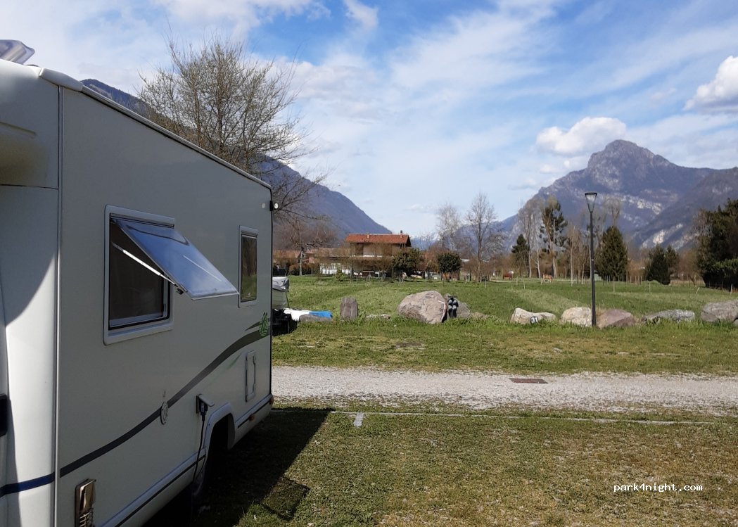Aire camping-car avec tous les services ouverts, douches extérieures chauffées par panneaux solaires (fermées en hiver), toilettes ouvertes 24h/24 pour les clients de l'aire camping-car, emplacement au bord du lac, piste piétonne et cyclable. Plage publique à 100m, port avec départ bateau pour le tour du lac d'Idro à 100m.