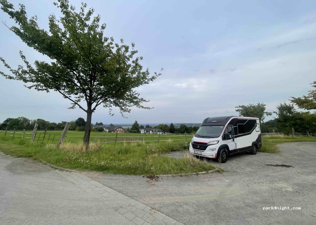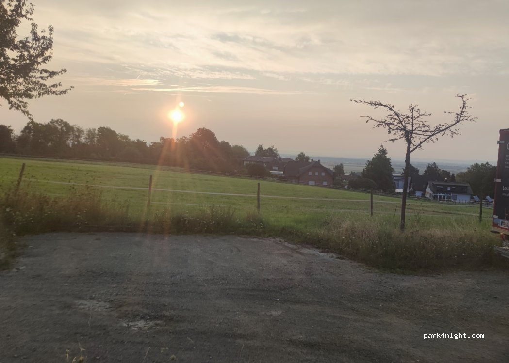 Ein ruhiger und schön gelegener Parkplatz auf einem Hügel. Am Abend waren noch jüngere Pärchen zum Genießen der Aussicht. In der Nacht waren wir aber alleine mit einer weiteren Camperfamilie hier oben. Für eine Nacht vor oder nach dem Phantasialand sehr zu empfehlen.