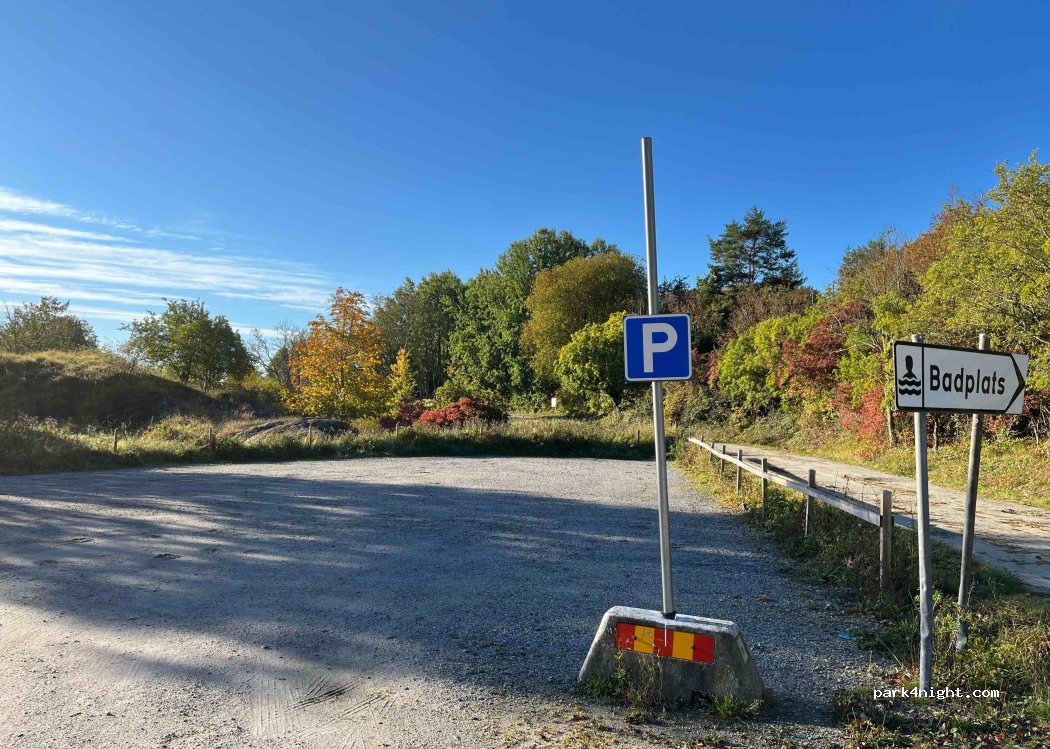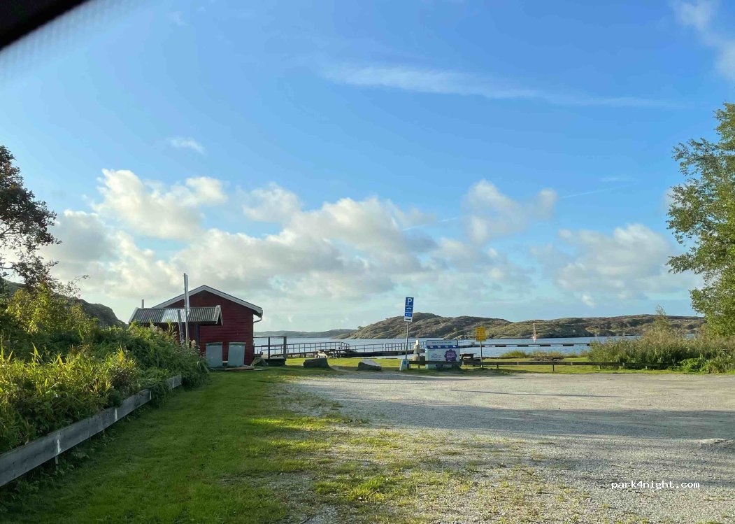 Einfacher Schotterparkplatz, vorderer Bereich u Seitenstreifen durch portable Schilder für gemischtes Parken frei, hinterer Bereich nur PKW. Tags etwas Bewegung, nachts sehr ruhig. Kurzer Fußweg zur Badebucht. Herrliche Aussicht u Sonnenuntergang vom historischen Punkt 'sankt olovs valar', von dort Weg über Fels bis hinunter zum alten u idyllischen Ortskern möglich.