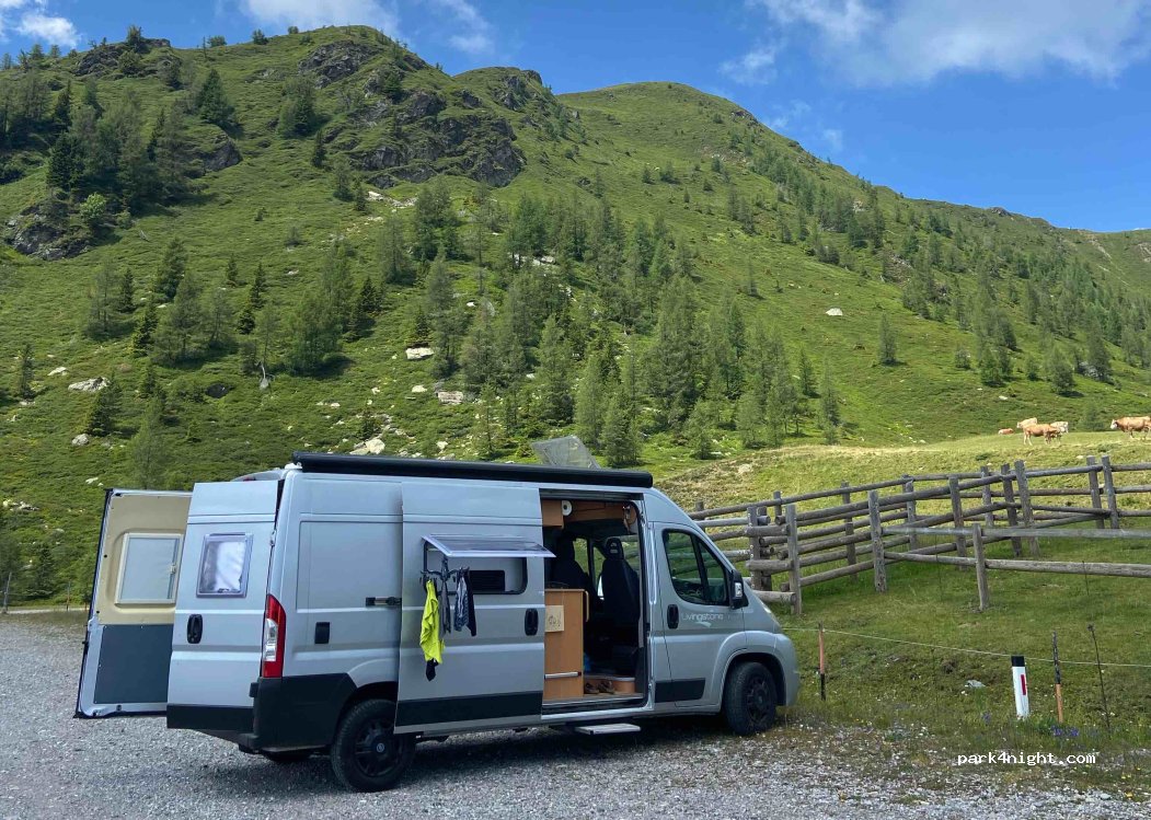 Traumhafter Platz mit super Alpenpanorama. Sind eine Nacht geblieben und wurden durch nichts gestört (außer ein paar neugierige Kühe). Wenn man nach 16 Uhr die Mautstraße hochfährt, sind die Schranken offen und die Mautstation unbesetzt. Wurden durch einen Zettel an unserer Frontscheibe am nächsten Morgen drum gebeten, die Mautgebühr ( ca. 14€) beim Rückweg zu zahlen. Allerdings ist nur Barzahlung möglich, hatten kein Bargeld dabei und konnten auch ohne Probleme ohne zu Bezahlen wieder runter.