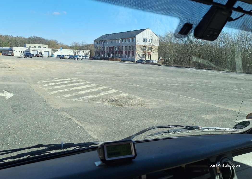 There is a parking place next to entrance to Miraculum. Biggest playground for kids in Czech Rep. We spend night there and no problem. Free parking, toilets.