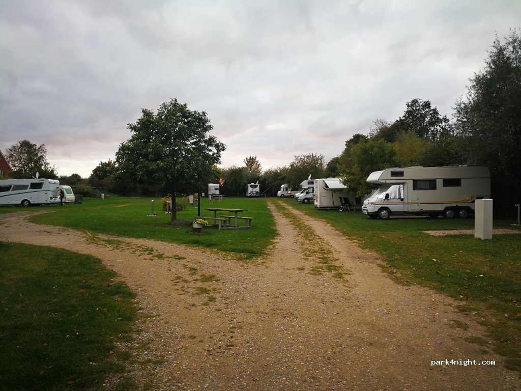 Ruhiger Stellplatz auf einer Wiese vor dem Campingplatz. Sehr freundliche, hilfsbereite Mitarbeiterin. An jedem Platz gibt es Strom, Wasser und einen Grauwasserabfluss, für den man einen extra Schlauch braucht. Man darf die Sanitäranlagen der Dauercamper benutzen. Warm duschen kostet extra. Frische Brötchen beim Bäcker direkt am Platz. Pro Nacht 16,50 für ein Womo mit 2 Erwachsenen. Fairer Preis!