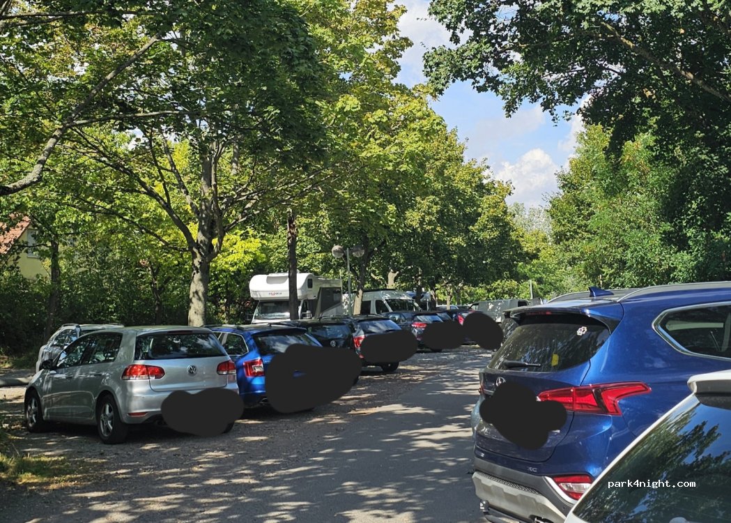 Ruhiger Parkplatz mit Schatten, sauber und Stadtnähe- Abfallbehälter - in der näheren Umgebung Einkaufsmöglichkeiten