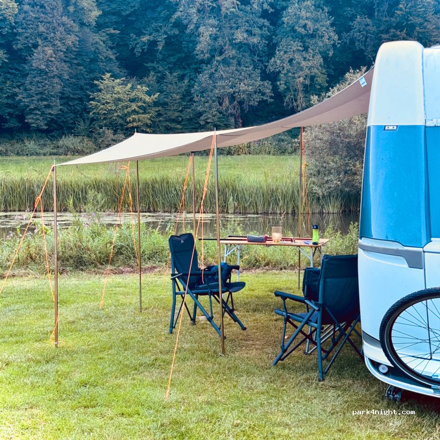 Wir waren auf der Durchreise hier. Hinter der Anhöhe befindet sich die AB. Wir haben trotzdem gut geschlafen. Du kannst ihn nach deinen Wünschen online buchen. Es gibt auch sehr große Plätze. Die sanitären Anlagen sind modern und sehr sauber. Der Müll wird sortiert. Bewahrt das bitte. Das Personal ist total nett. Abends kann man am Platz etwas trinken gehen. Wir kommen gerne wieder.