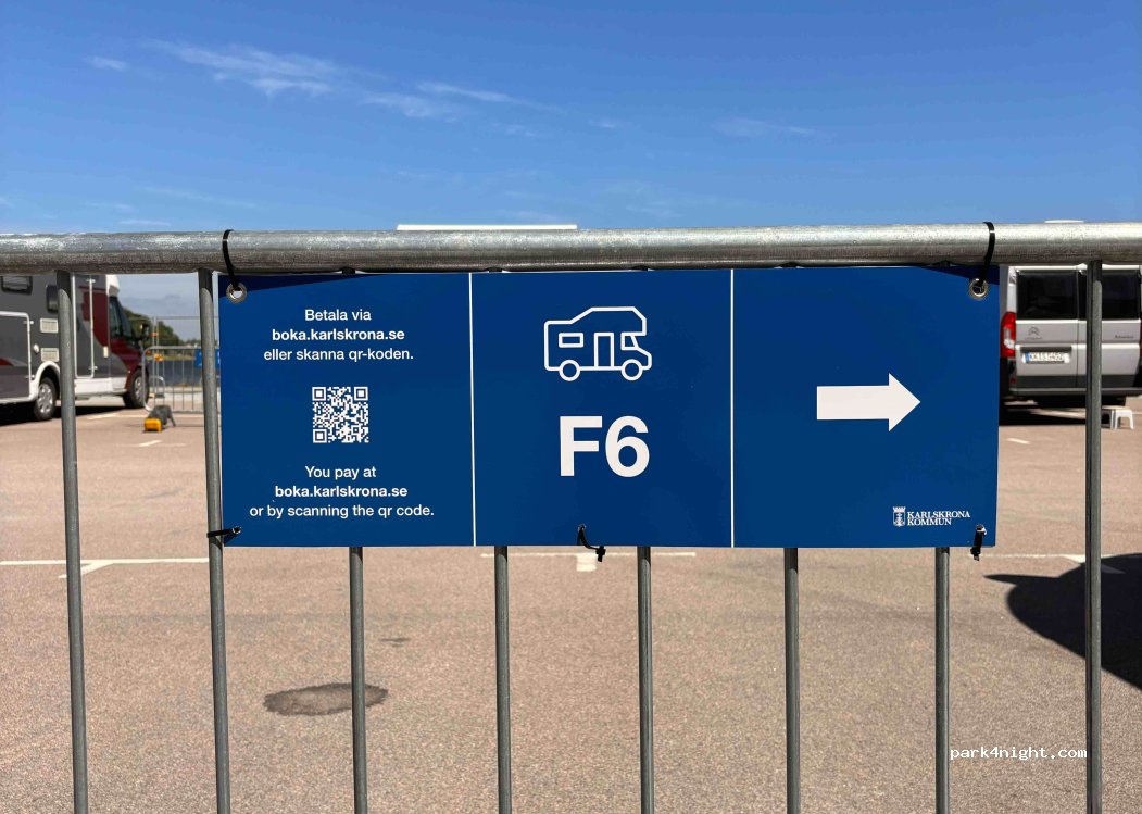 Großer Stellplatz, zentrale Lage. Nahe am empfehlenswerten Marinemuseum. Die Mehrzahl der Plätze ist ohne Strom. Man kann Plätze vorher über die Homepage der Karlskrona- Kommune buchen (bis 7 Tage), was sinnvoll ist, damit man nicht in der letzten Parkreihe nahe der Straße steht. Keine Grauwasser-Entsorgung. Man benutzt die Duschen des Marina-Gebäudes.