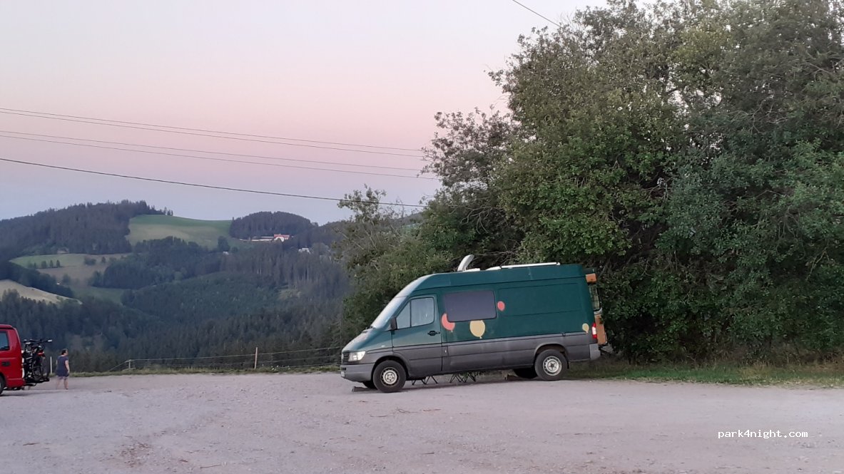 Schöner Schotterparkplatz mit toller Aussicht. Nachts sehr ruhig, tagsüber viel Verkehr und andere Wanderer. Mülleimer vorhanden, 4G Internet. Die oberen Parkplatze sind recht gerade, weiter unten ist es schon sehr schräg. Toller Startpunkt um schöne Wanderungen zu unternehmen.