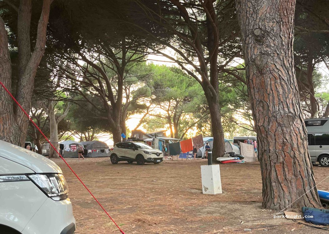 In der Hochsaison ohne Probleme einen Platz ohne Reservierung bekommen. Schöner Platz unter alten Pinien. Keine Parzellen, freie Platzwahl. Großer Platz, verläuft sich aber. Jedoch sollten die sanitären Anlagen bei so vielen Menschen, öfter gereinigt werden.
