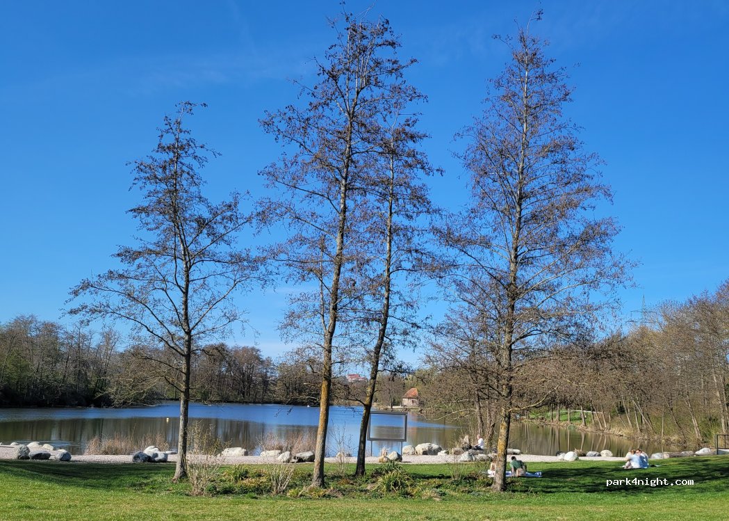 Am Rande Großparklpatz, schöner Weg durch den Park in die Stadt. Nachts ruhig.