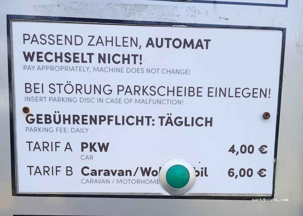 Womo 6,00€ täglich (0.00 - 24 uhr!) / pkw 3,00 € t