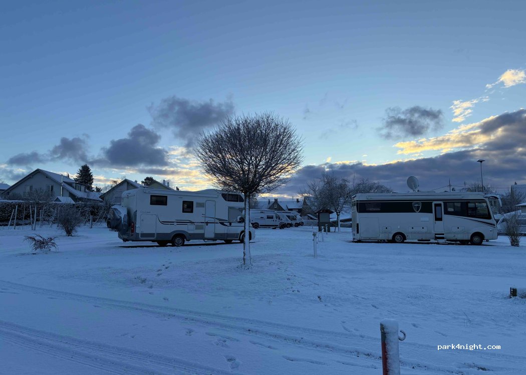 Aire calme avec les cigognes, propre, pratique pour visiter Meersburg, faire du vélo autour du lac. Électricité et eau payante mais on ne paie que ce que l'on veut consommer.