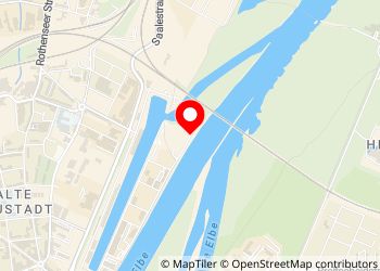 Repos / stationnement au port scientifique de Magdebourg. Directement sur l'Elbe-Rad-Weg, vous trouverez un petit café tranquille et un pont-levis en fonctionnement à proximité.