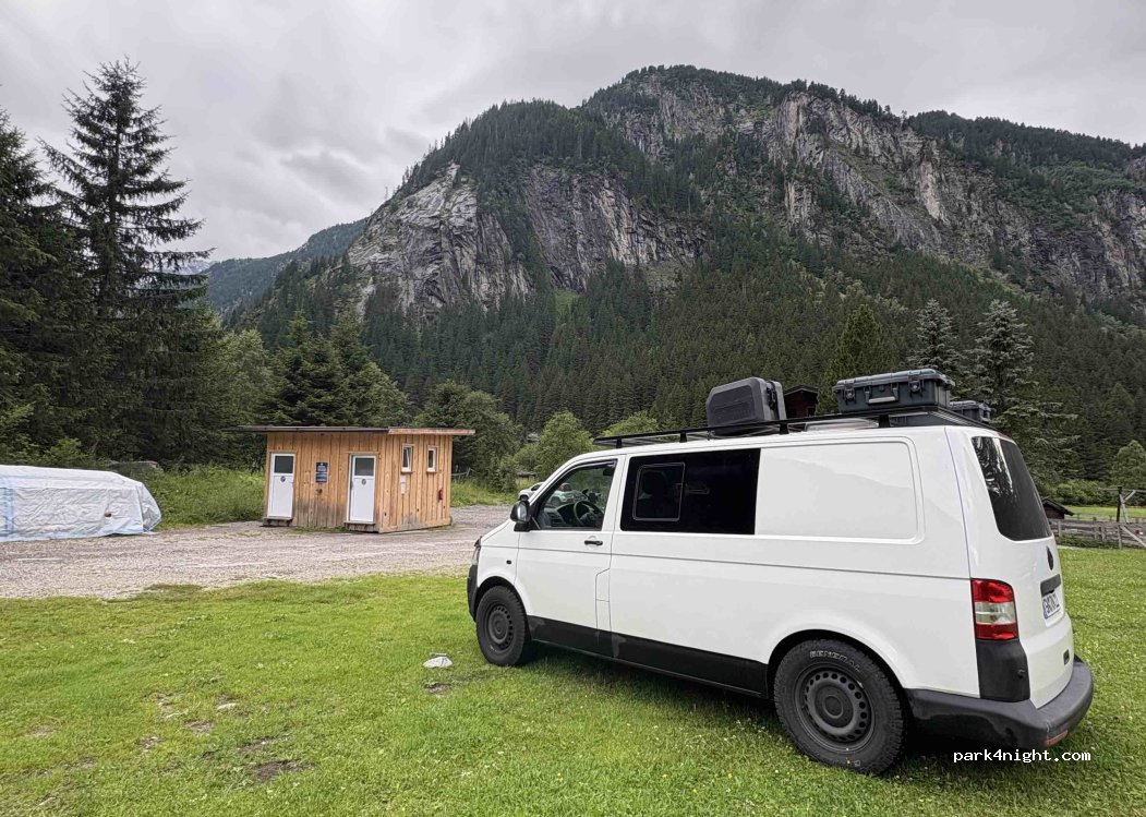 Einfacher Stellplatz mit guter Ausgangslage. WC kann, solange das Gasthaus geöffnet hat, genutzt werden. Duschen sind nicht vorhanden. 5€ pro Person allerdings kostet die Mautstrasse zum Parkplatz 10€ pro PKW.