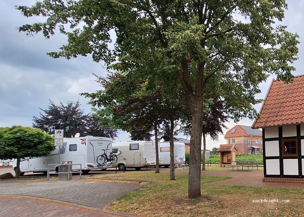 Der Platz ist sehr schön angelegt, insgesamt 6 Wohnmobilstellplätze, relativ “neu” gepflastert, wirkt daher sehr einladend. Hinter den Stellplätzen ein wenig grün, wo man sich im Sommer hinsetzen kann. Insgesamt sehr ruhig, aber Bäckerei sowie Supermarkt sind fußläufig erreichbar. Nachteil ist, dass man sehr eng steht, wenn alle Plätze besetzt sind (aktuell sind wg. der Covid-19-Pandemie die mittleren Stellplätze abgesperrt).