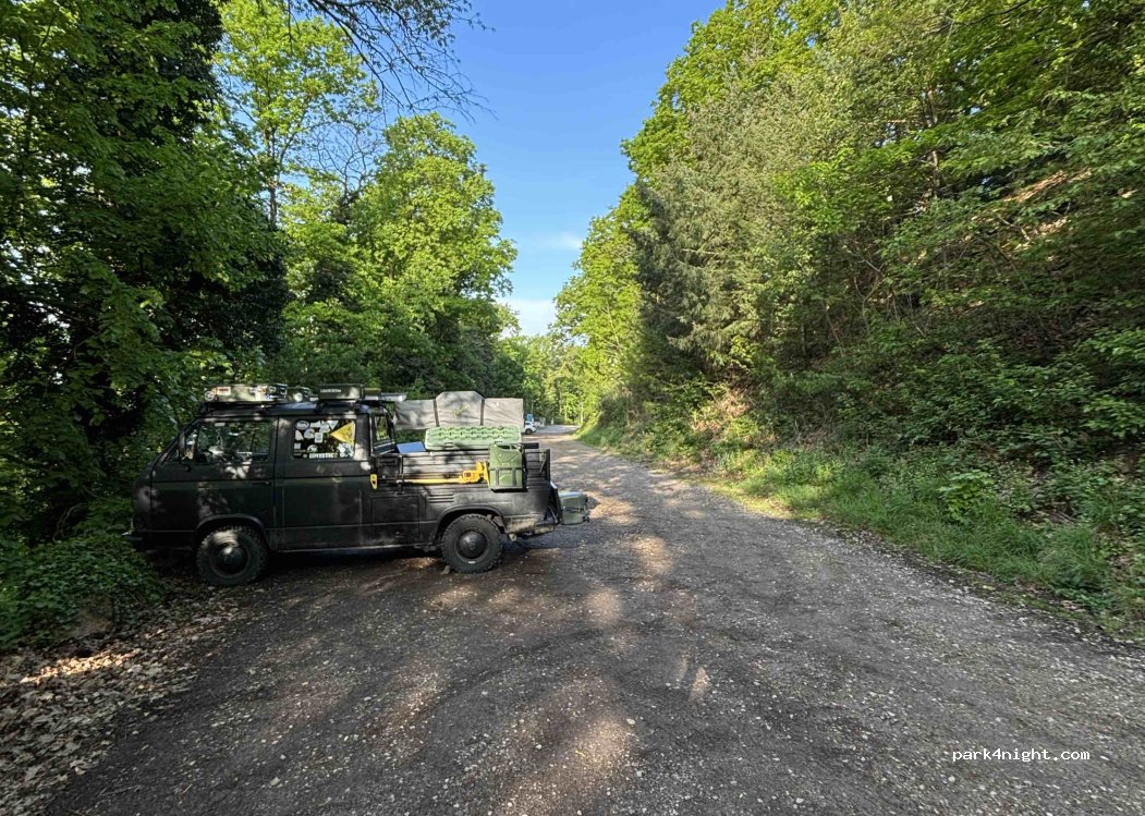Beautiful, quiet trail parking lot below the Wachenburg. It leads up a narrow street. For motorhomes, the ride is not recommended. For small buses, campervans no problem. Parts of the parking lot are tarred. Dustbin available. No sanitary facilities.