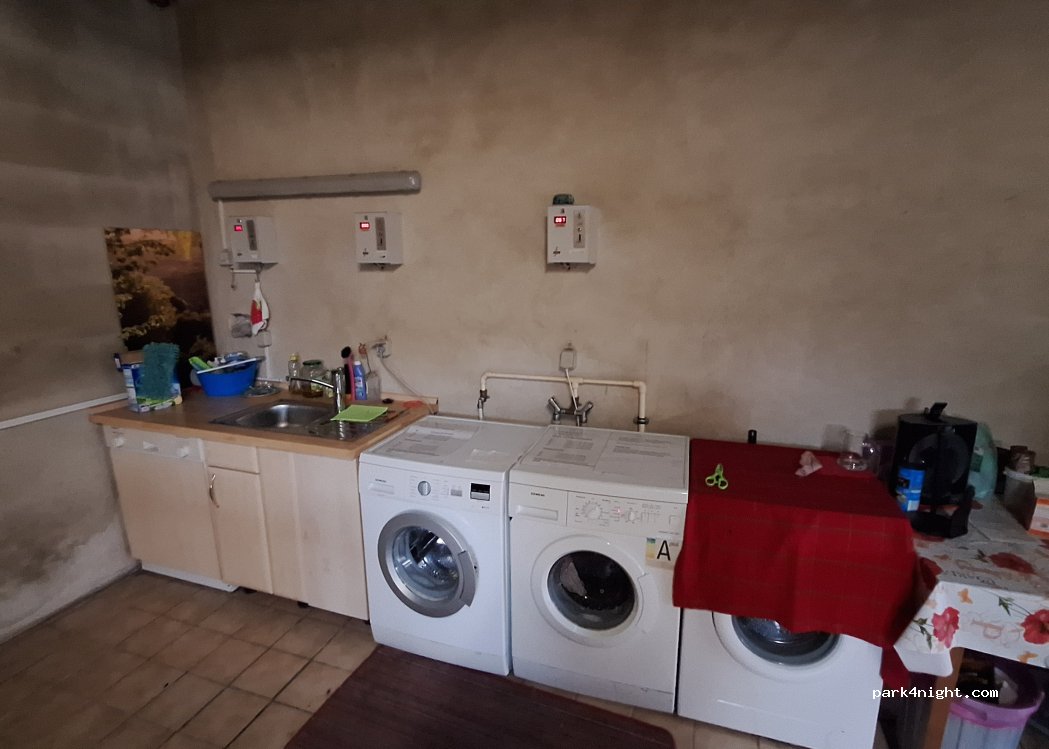 Fijne wasserette. gevestigd in een garage. enkel muntjes van 50 cent. wastafel aanwezig, we hebben hier ook water genomen.