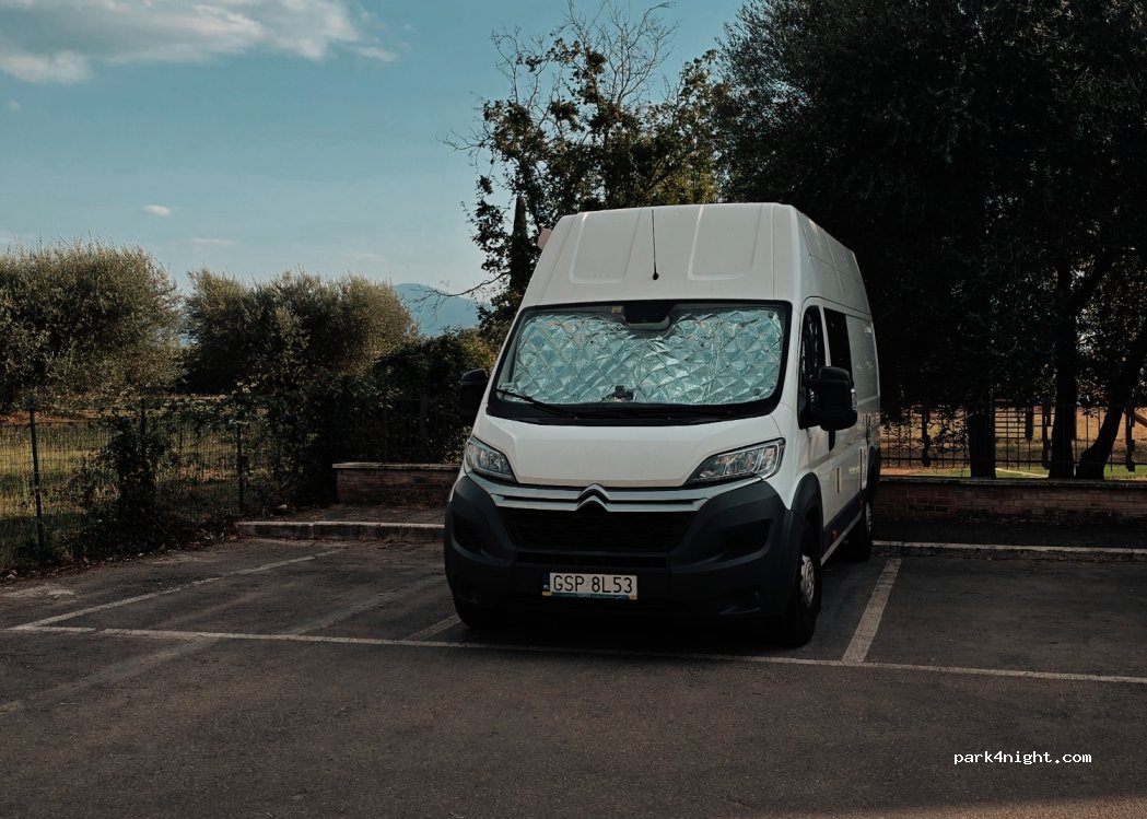 Parking lleno, pero un poco más adelante a la derecha, en la via dell'Aia, hay un pequeño aparcamiento para 8 vehículos donde hemos dormido muy tranquilas.