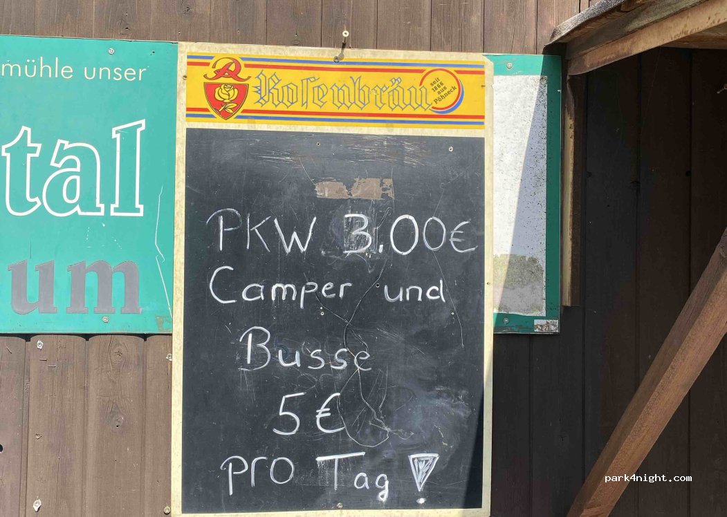 Prima Platz zum übernachten. 3 Euro fürs Parken. Sehr ruhig, schöne Umgebung