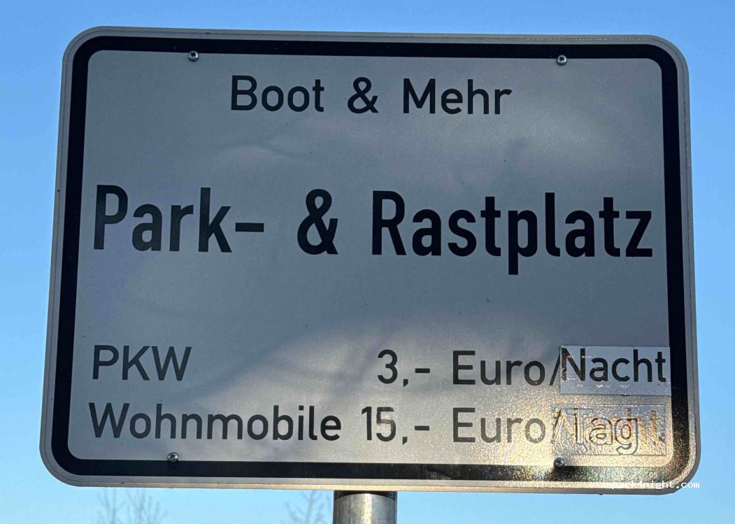 Die Nacht mit dem Van hat 10 € gekostet und kann unten beim Imbiss "Boote und mehr" bezahlt werden. Dort gibt's auch von morgens bis abends Verpflegung. Und ne warme Dusche gibt's da auch!