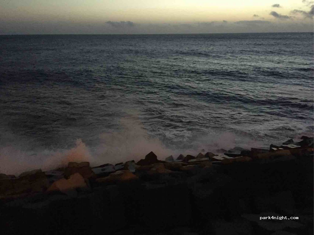 Parking confortable et calme, sur le bas-côté plat, à côté du trottoir menant à l'océan. Fin de route avec un grand espace pour tourner. Un restaurant et accès à la plage et belle promenade tout au long de l'océan. Grand son de l'océan. Facile d'arriver avec le camping-car lourd