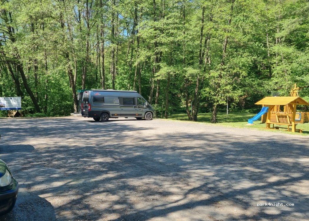 Sehr schöner Parkplatz mit Spielplatz. Es darf nicht übernachtet werden, wir hatten gefragt (2.5.25). Daher ein Stern weniger (4night). Für eine Wanderung in die Umgebung oder auf die Burg gut geeignet. Kioskbetreiber waren sehr freundlich und gaben Erläuterungen.