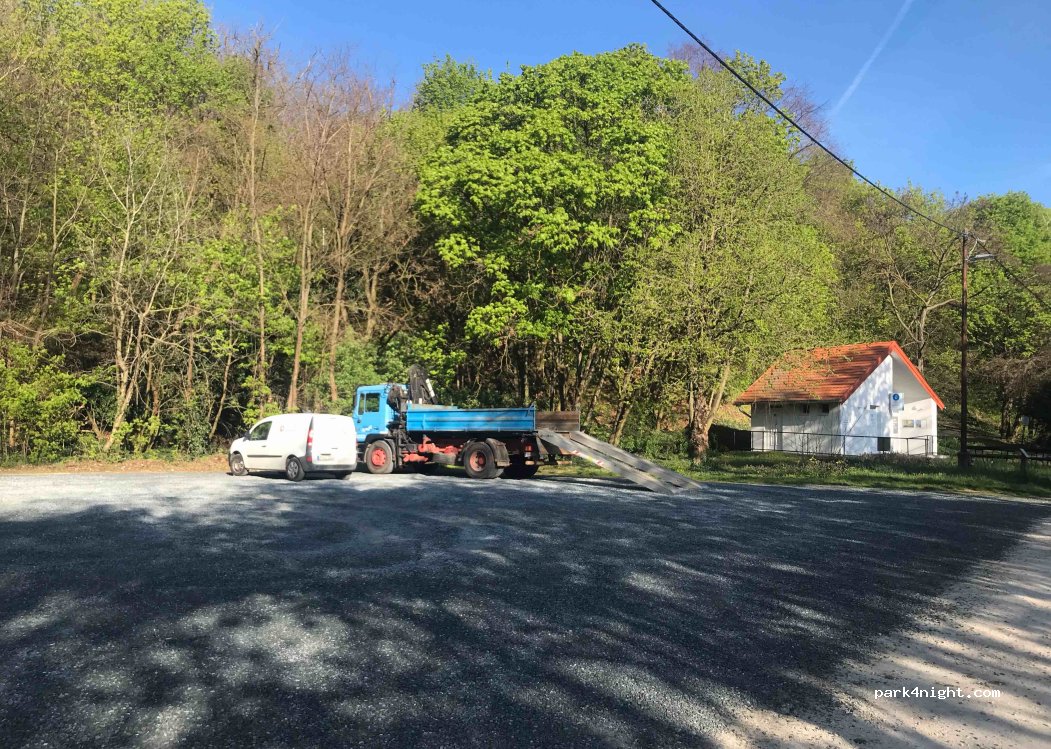 Place de parking calme et paisible à côté de la forêt et d'une maison d'hôtes, où vous pouvez utiliser les toilettes pour 200 HUF. Alimentation en eau gratuite à l'extérieur de la maison.