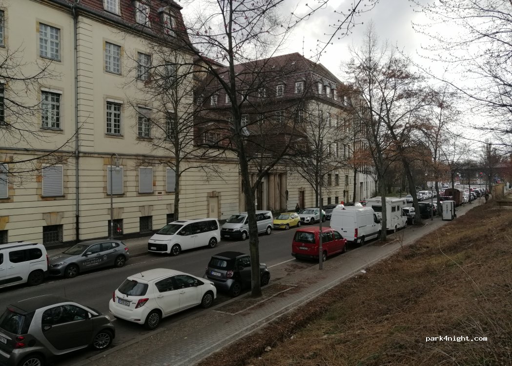 Parking près du Musée allemand de la technologie et du Technodrom avec piscine Liquidrom. À distance de marche facile. Parking gratuit au bord de la route à côté d'un parc, relativement calme. Parking supplémentaire dans la suite de la route, si encore libre. Métro station Möckernbrücke dans les environs immédiats