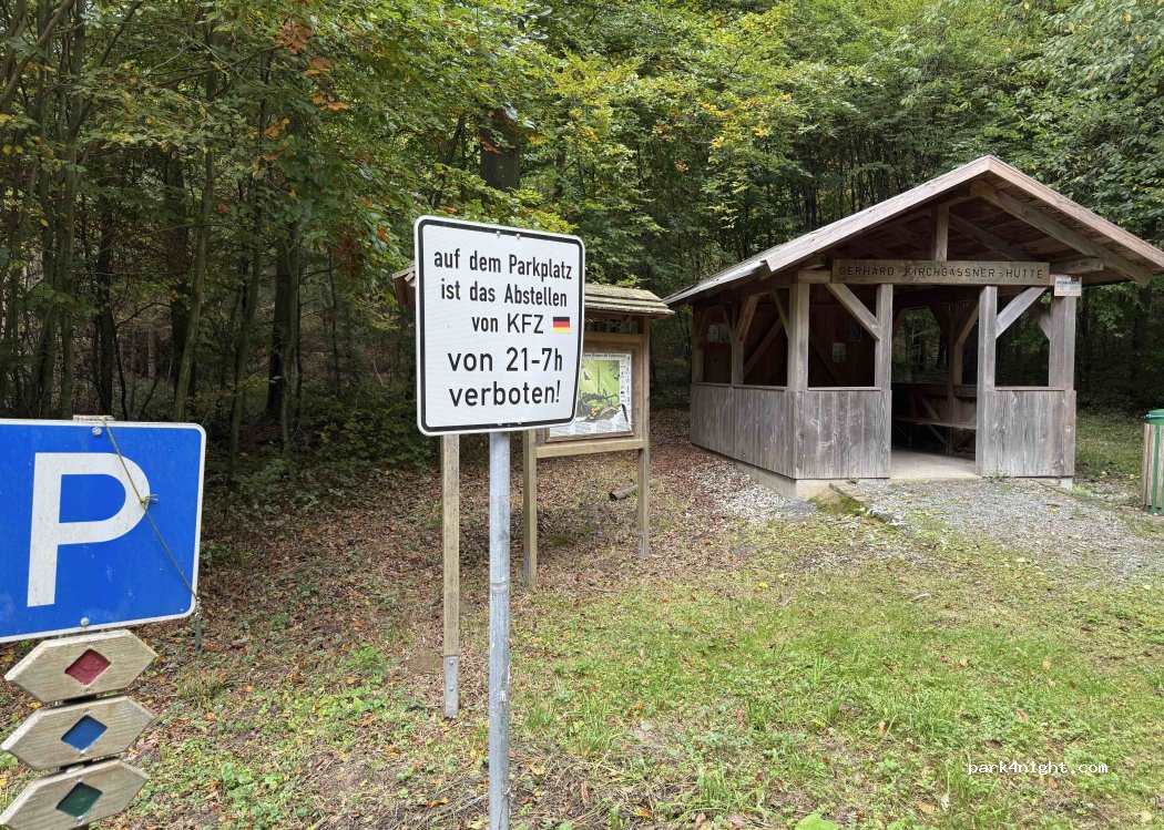 Guter Ausgangspunkt zum Wandern im Wald und Weinbaugebiet. In der Nähe des Römerbrunnens. Keine Übernachtungen mehr erlaubt.