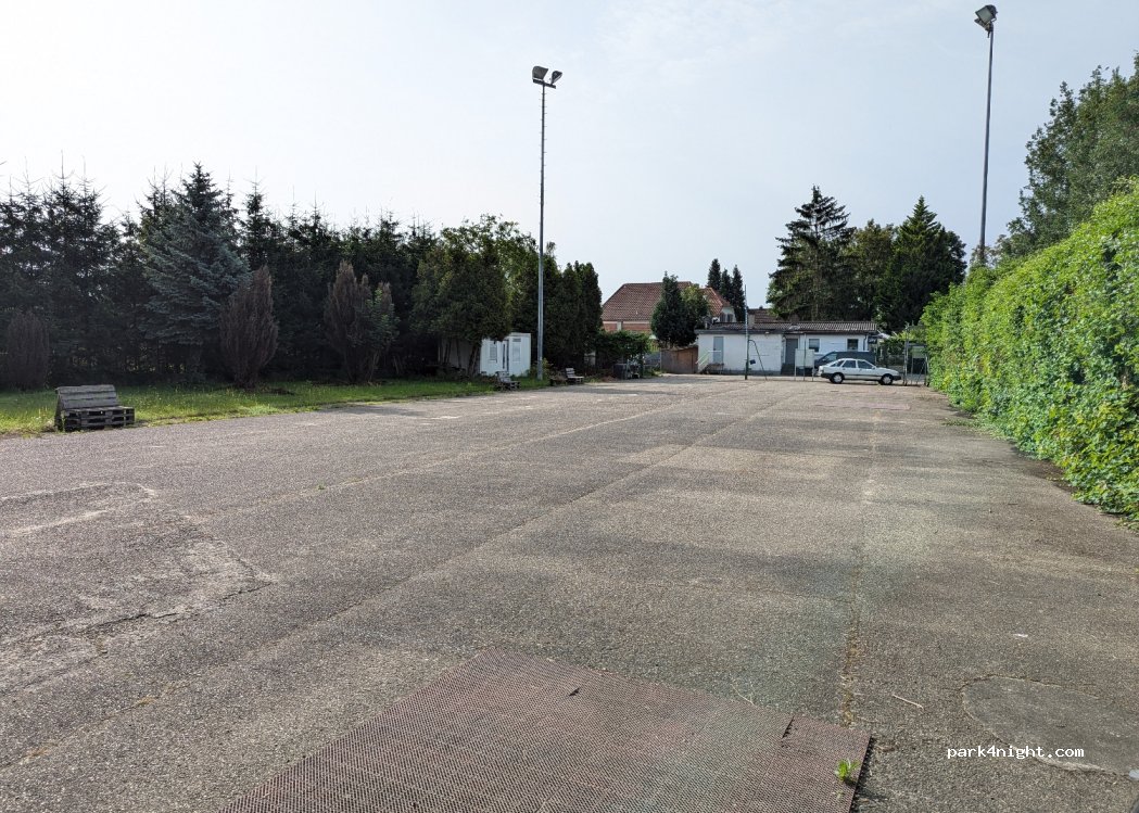 Prima plek om een nacht te staan. We stonden er vannacht maar met 3 campers. Straatsburg 10 km fietsen, heel goed te doen via fietspaden. Er is stroom, 4 euro. Voor camper 12 euro. Schoonwater is te pakken. Het is een grind parkeerterrein.