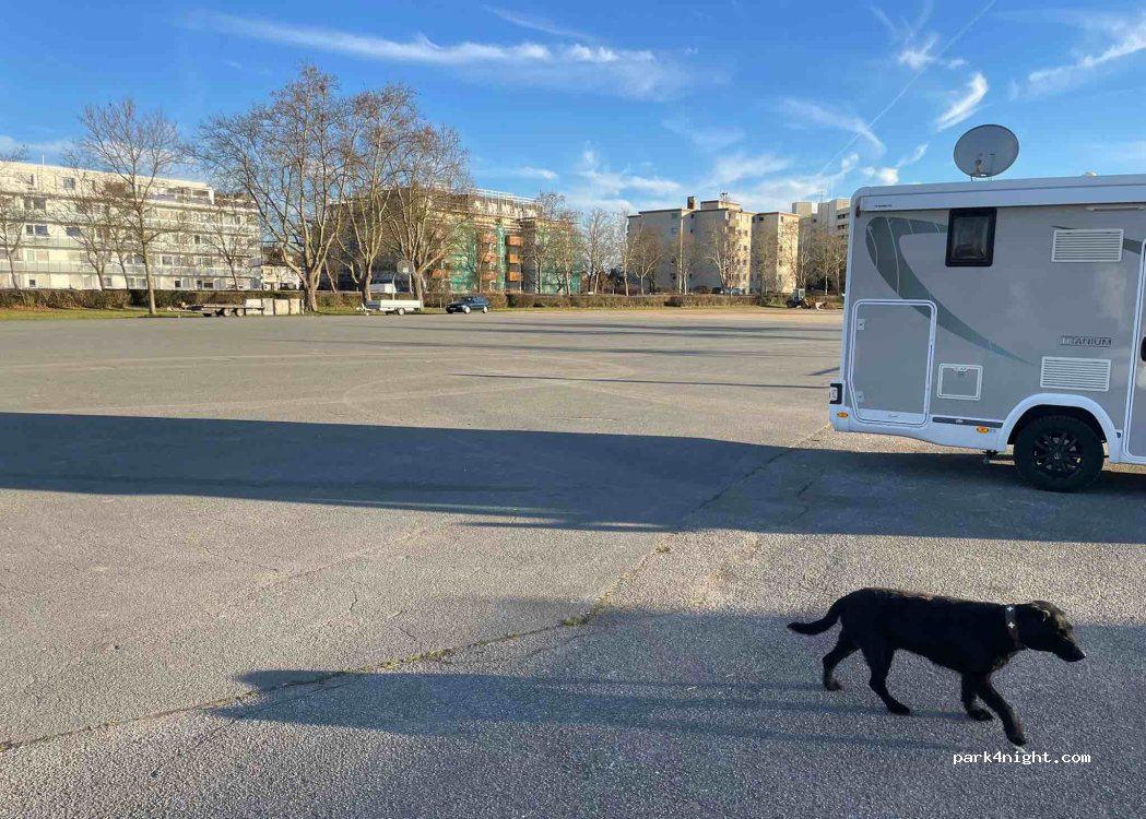 Parc des expositions/parking à 10 km de l'aéroport, avec le bus numéro 751 - arrêt à 100 mètres - jusqu'au Terminal 1 en 20 minutes pour 4,00 euros. Les camions sont interdits de stationnement, mais les mobil-homes sont des véhicules spéciaux. Idéal si vous souhaitez emmener quelqu'un à l'aéroport la veille au soir. Le bruit des vols et de la rue est considérable, mais ok après 22 heures. Ne convient donc pas aux vacances ou au camping de longue durée, mais idéal comme base d'aéroport. Avant de le faire, vous devriez consulter le calendrier des événements à Möhrfelden-Walldorf.