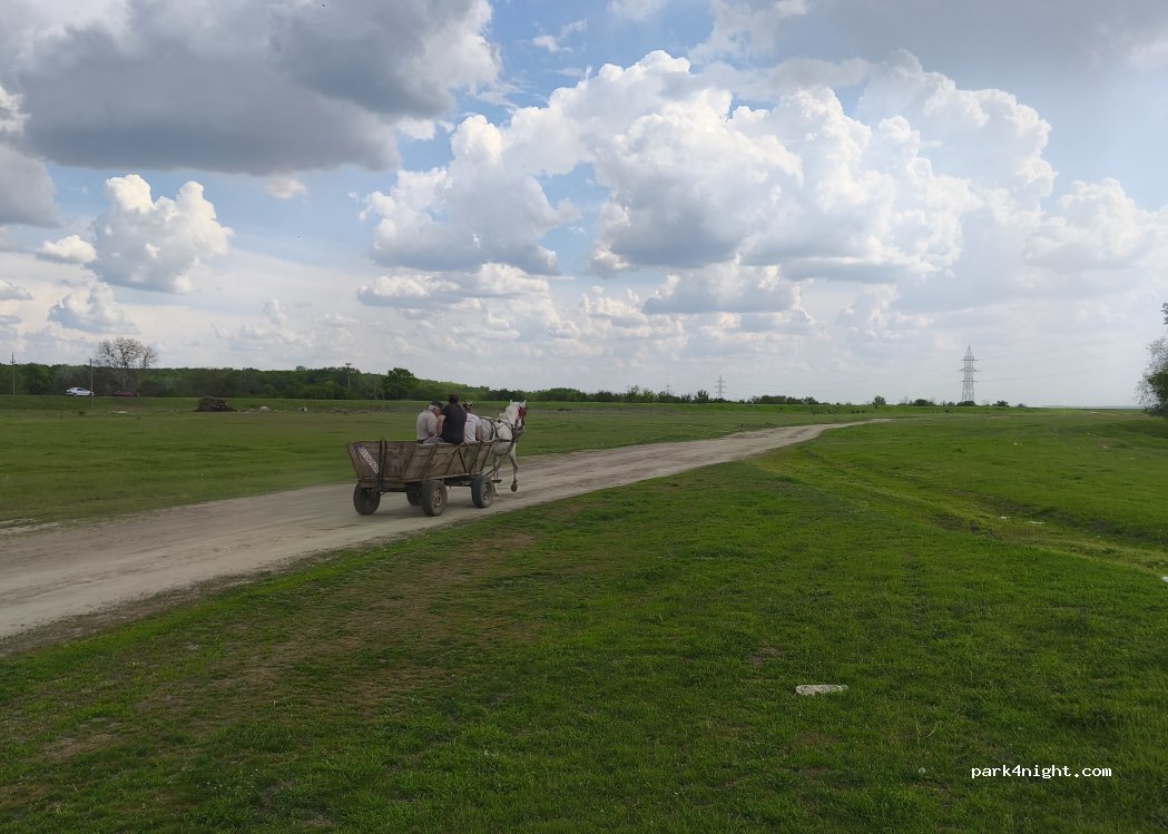 Dieser Ort sieht aus wie ein verlassener Campingplatz. Es gibt Bungalows in der Nähe, aber sie waren im August geschlossen. Ich denke, der Campingplatz selbst funktioniert nicht mehr. Praktisch unbegrenzter Platz zum kostenlosen Parken in der Nacht. Schön und schattig dank der umliegenden Bäume. Fluss und Dorf in der Nähe. Es lag viel Müll auf dem Boden, aber es gab eine erhöhte Plattform. Es gibt Leute, die in der Nähe Traktoren übergeben, ich habe eine ruhige Nacht dort verbracht.