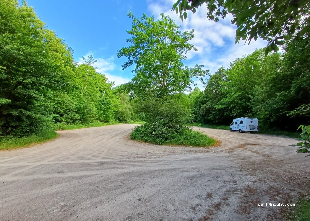Hatten diesen großzügigen Parkplatz letzte Nacht ganz für uns alleine. Ideal füe eine Nacht autark. Keine Services, keine Mülltonnen - bitte Platz sauber halten. Durch den direkt angrenzenden Forst war es sehr einfach, den mitreisenden Hund zu lüften. Die nahe L461 war deutlich hörbar, zur Nacht ließ der Verkehr aber merklich nach.