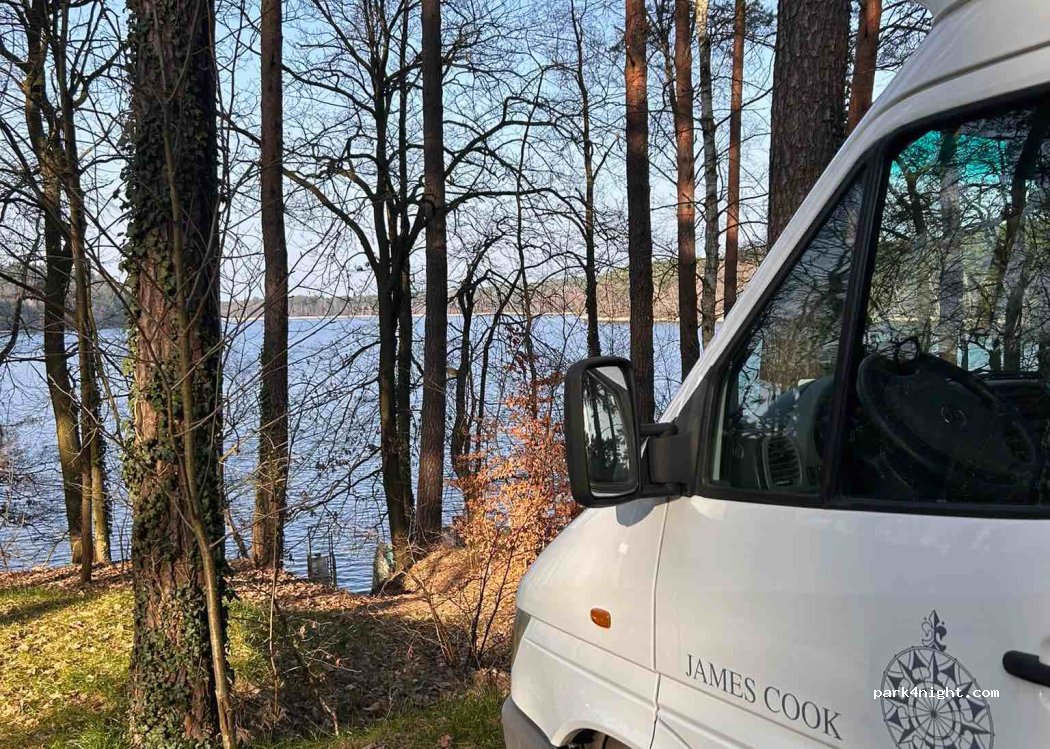 Natural campsite at the Springsee. Place located directly on the spring lake. Very quiet in winter (I can't say summer). Very nice reception. Space in the forest, parking spaces large enough, even for larger vehicles.