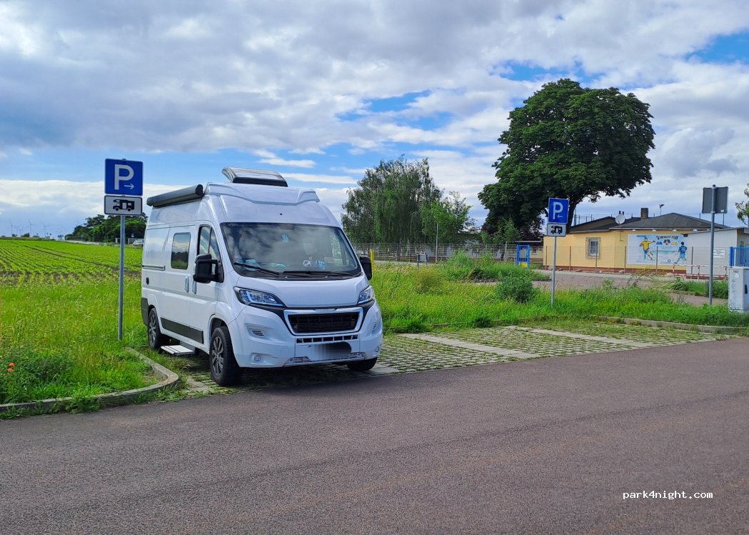 Am Ortsrand neben der Feuerwehr gelegen, für einmaliges Übernachten gut geeignet. 4 Parkplätze für Wohnmobile sind ausgeschildert.