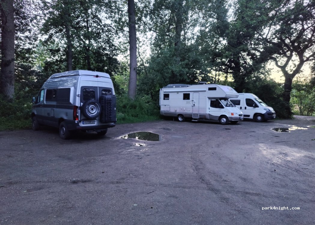We brachten er een nacht door op onze terugreis Ondanks de kuilen kun je vlak staan. We waren zeker met 5 campers. In de avond kwamen meerdere autos de parkeerplaats om daarna ineens weer weg te gaan? Vroeg vertrokken om de drukte rondom Hamburg te vermijden. Op 500 meter afstand zit een restaurant met openbare toiletten. Wel alleen open als restaurant open is.