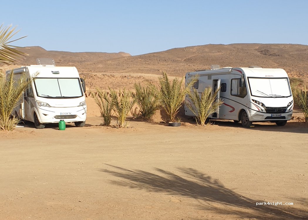In einem der schönsten Teile der marokkanischen Sahara liegt dieser kleine aber feine Campingplatz. Die Parzellen sind von kleinen Palmen eingerahmt und bieten auch für große Allradfahrzeuge genügend Fläche. Eine Übernachtung im Zelt ist ebenfalls möglich. Das Essen ist sehr gut und die Bedienung freundlich.