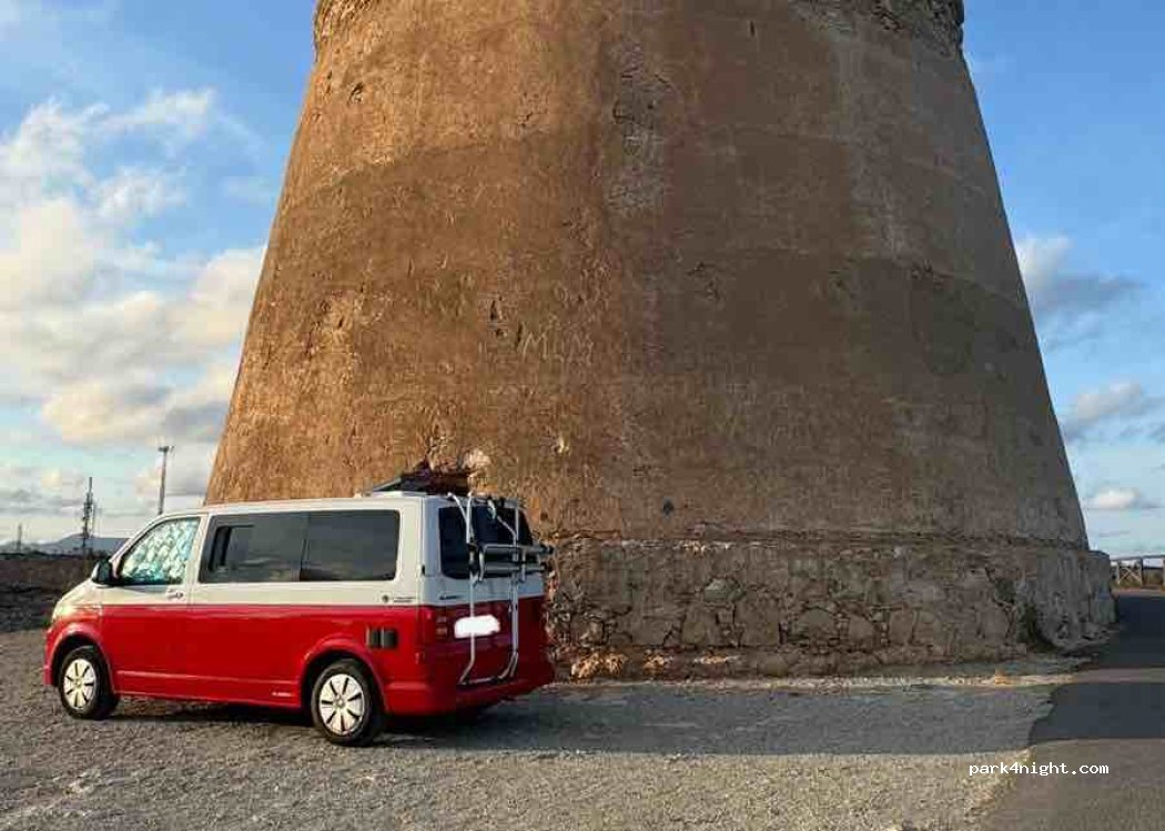 Hemos pasado una no he increíble. Vista panorámica preciosa de toda la zona. Muy tranquilo. Quizá si hace viento se notará bastante al estar en alto pero nosotros no pillamos nada de viento. Pasa la Guardia Civil haciendo rondas pero no dicen nada, se puede pernoctar. Hay una torre de vigilancia costera del siglo XIII y un faro.