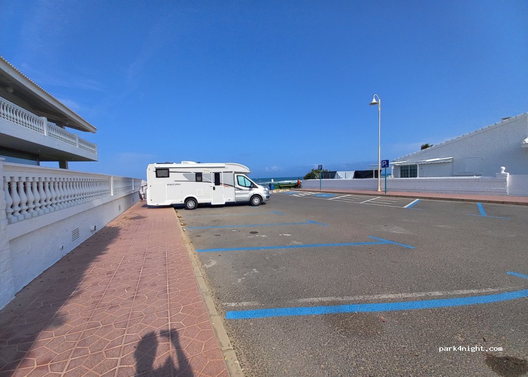 Buen sitio para pasar una noche, silencio absoluto, solo las olas del mar y 0 coches. dormimos con las puertas abiertas por la ola de calor y sin problemas. A dos minutos el paseo donde hay bares y restaurantes. No hay WC ni agua potable.