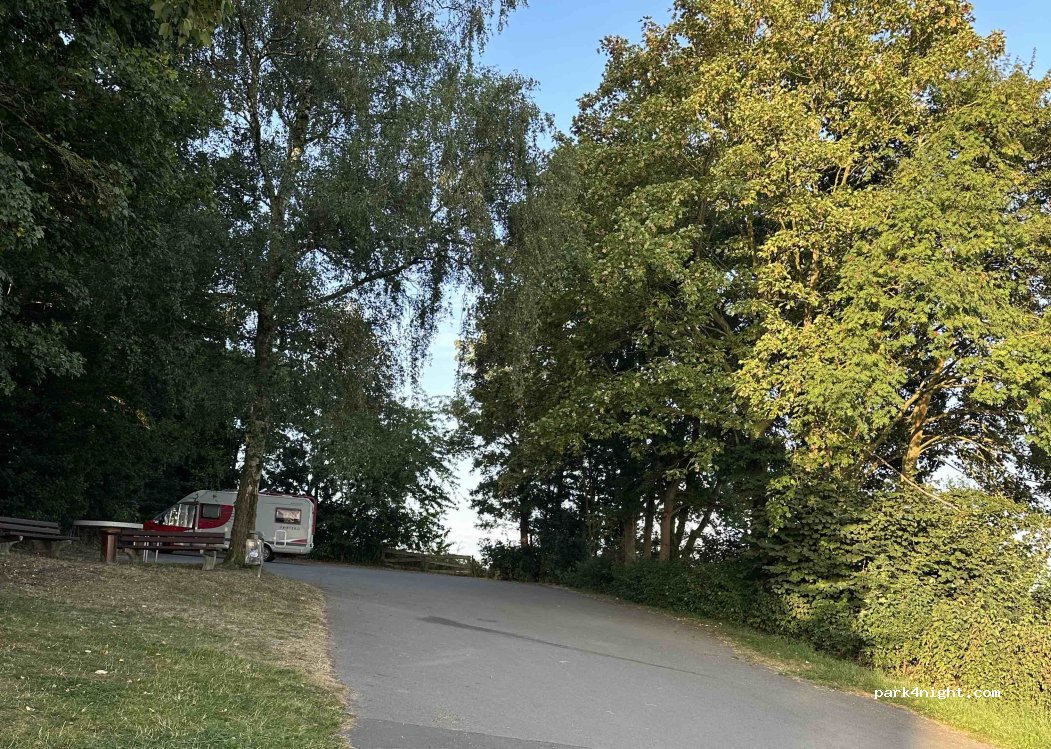 Man hat hier eine schöne Aussicht auf die Burgruine. Der Platz befindet sich am Ende der Auffahrtsstraße. Es war sehr ruhig. Leider ist der Parkplatz etwas schräg.