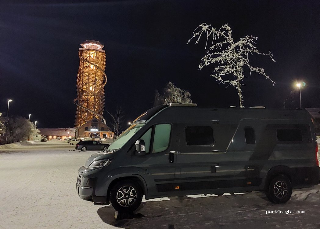 Parking lot at the Bavaria Alm with a view of the Brocken (through the gaps in the trees or from the tower). Great for one night.