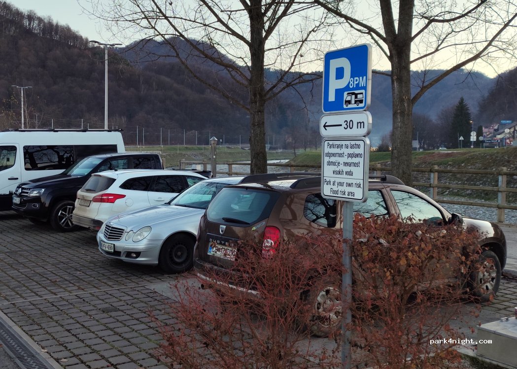 Camper stop Celje, near railway station next to river and bike/walking path.