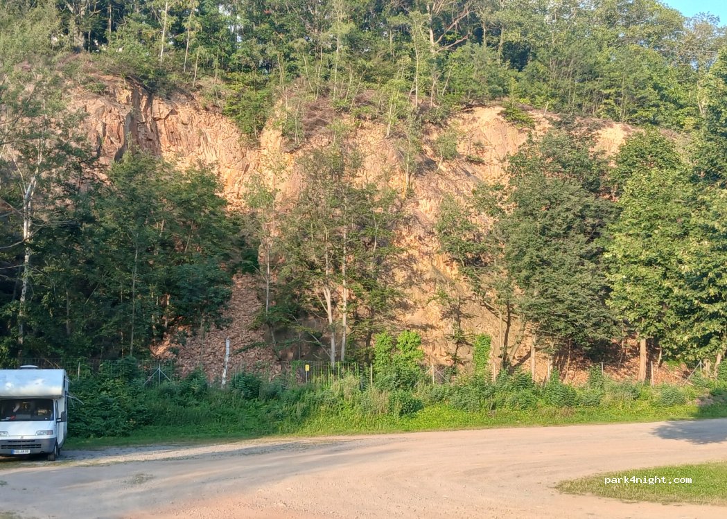 absolut still. Die Angabe oben ist falsch. Die Gebühren sind 5 € für 24 h ! WC für 50 Cent vorhanden. Burg mit historischem und Motorradmuseum. Gastronomie. Wanderwege. 10 auch sehr große Wohnmobile finden locker Platz. leicht abschüssig. Mit Keilen zu beheben.