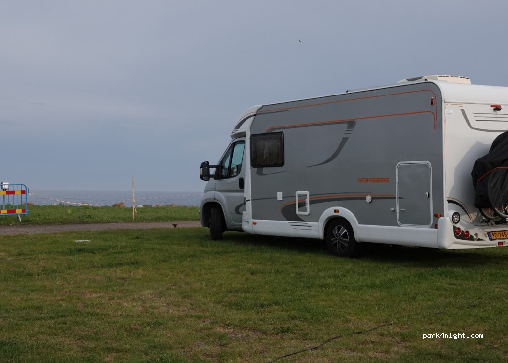 Nice place with view of the sea on one side and a small harbour on the other side. Room for much more than 8 campers. Although it is clearly written that you have to park in the middle between the concrete stone markers, there were quite a few who did not understand it. So there were several arguments between campers about how to park. Apart from that it is a nice place. Facilities okay.