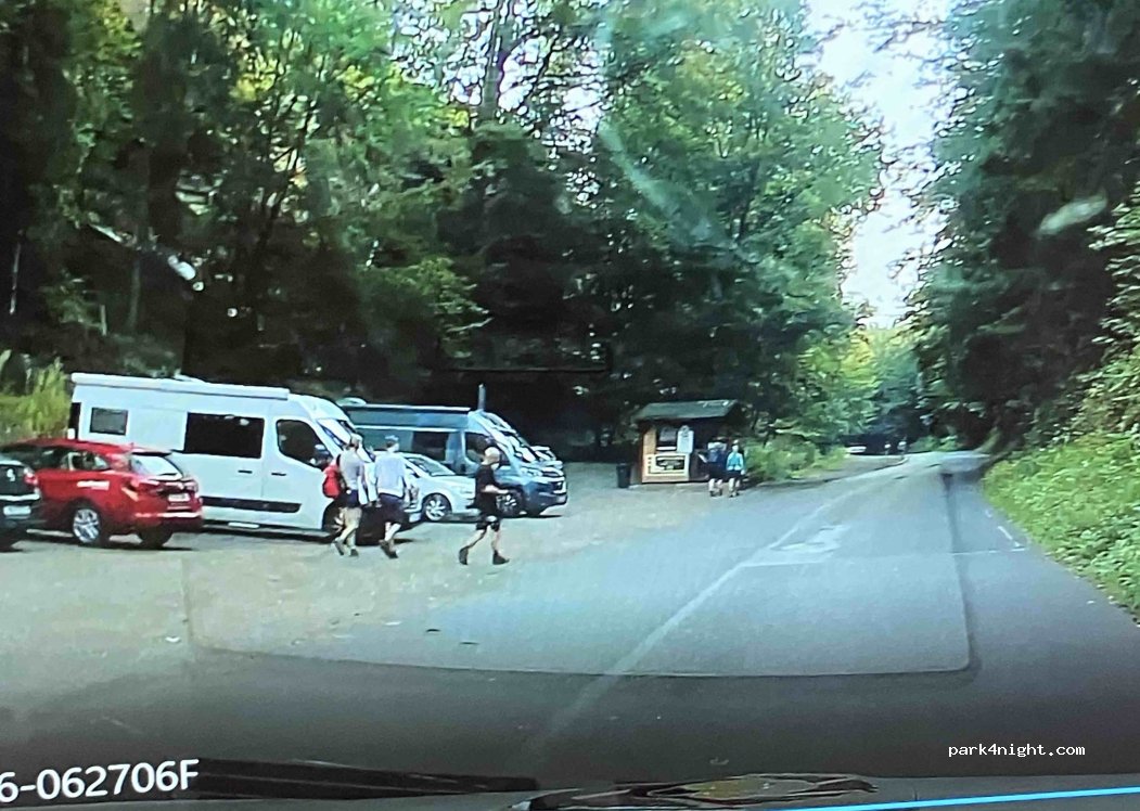 Der Platz war leider wegen eines Hubschraubereinsatzes den ganzen Tag gesperrt. Wir mussten 100 Meter weiter unten parken, was mit einem 8 Meter Camper Zentimeter Arbeit war. Hat 8.-€/24Stunden gekostet. Man kann gut zum Prebischtor gehen ca.60 bis 90 Minuten. Toll mit Hund.