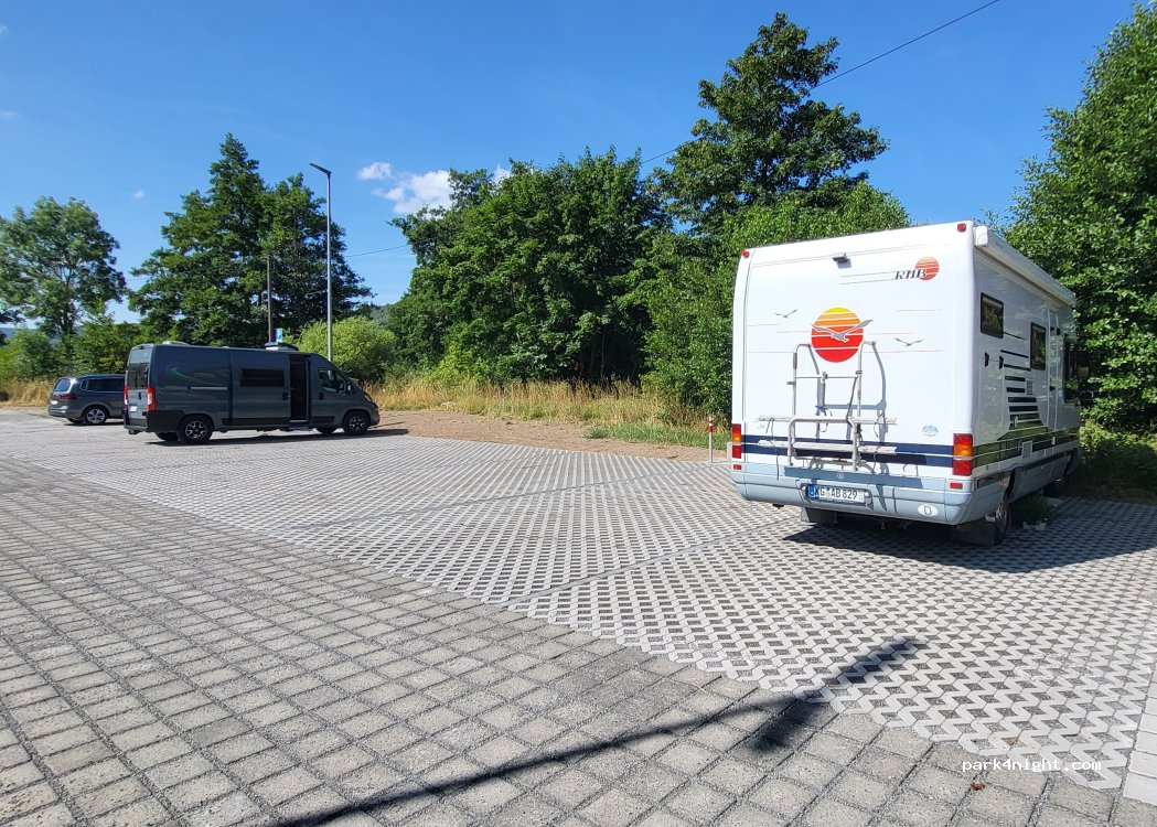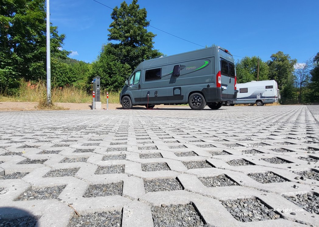 Idealer Übernachtungsplatz, befestigter Untergrund , parzelliert, beleuchtet, kostenlos. Was will man mehr ?