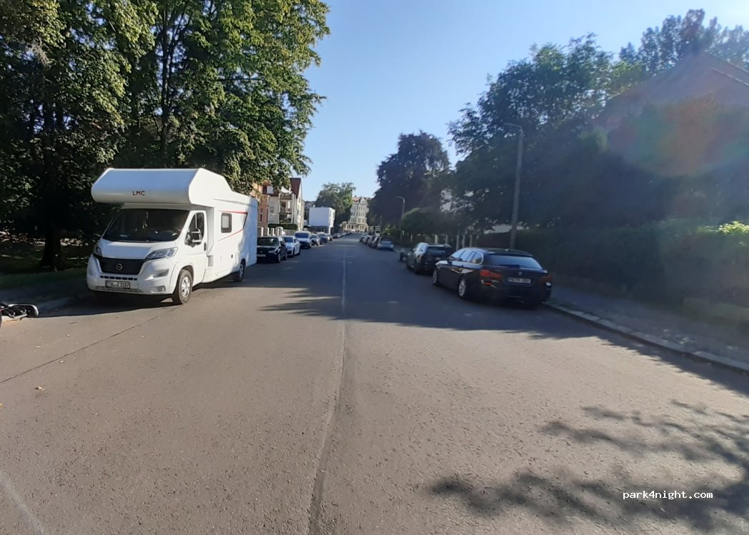 Parken am Straßenrand direkt am Zoo im Grünen . Straße ist an manchen Stellen abfallend aber man kann gute / ebene Plätze finden. Morgens sind Hundespaziergänger unterwegs, nachts ist es ruhig, abgesehen von seltenem Lärm durch S-Bahnen in der Nähe.
